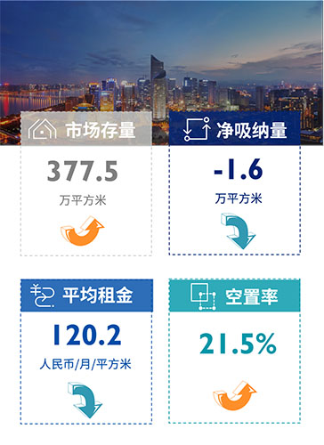 由于新增供应于本季度交付入市,全市甲级写字楼市场空置率环比上升至23.4%;为提高竞争力,部分项目业主做出更多让步以吸引优质租户,使得南京甲级写字楼市场平均租金环比小幅下调;